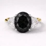 A 2.00ct triloogy ring with a 1.50ct Oval cut center black diamond flanked by two 0.25ct Half moon diamonds. Secure 4-claw and 3-claw settings enhance brilliance while maintaining refined balance in 18ct yellow gold.