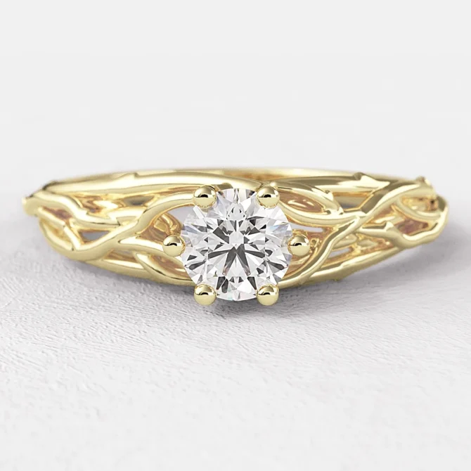 The true highlight of this ring is its intricate twig-style band, designed to mimic the natural curves and textures of intertwined branches. This unique design adds a romantic, organic feel while still maintaining a comfortable fit for everyday wear.