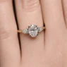 - Oval cut centre diamond with flattering finger coverage