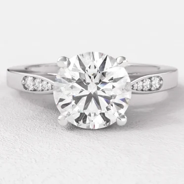 A classic round brilliant diamond is elevated by a six-claw setting, adding security and timeless symmetry. The delicate twist in the band brings a modern, romantic touch while keeping the design wedding-ring friendly.