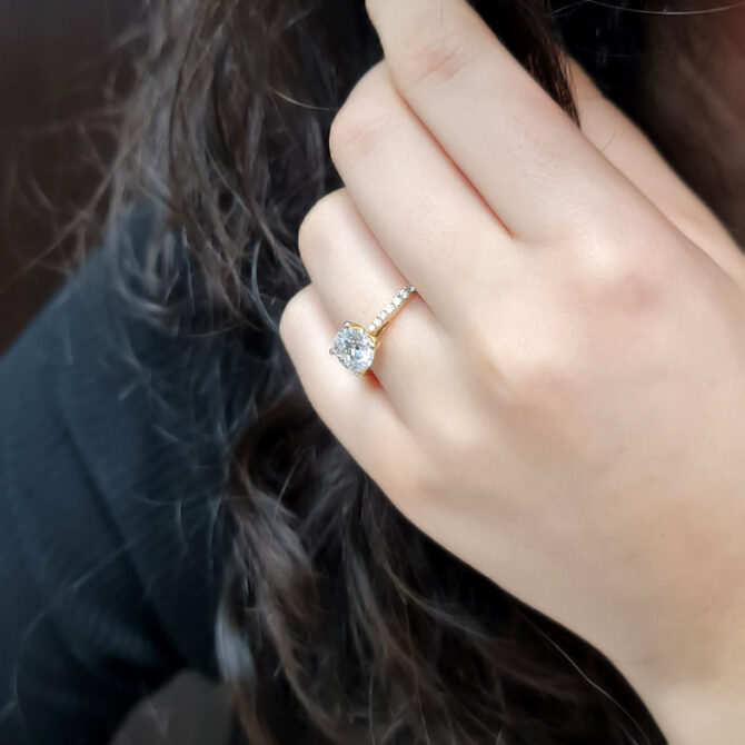 We also have fancy colour moissanites – from grey to blue, green to yellow and also pink moissanites.