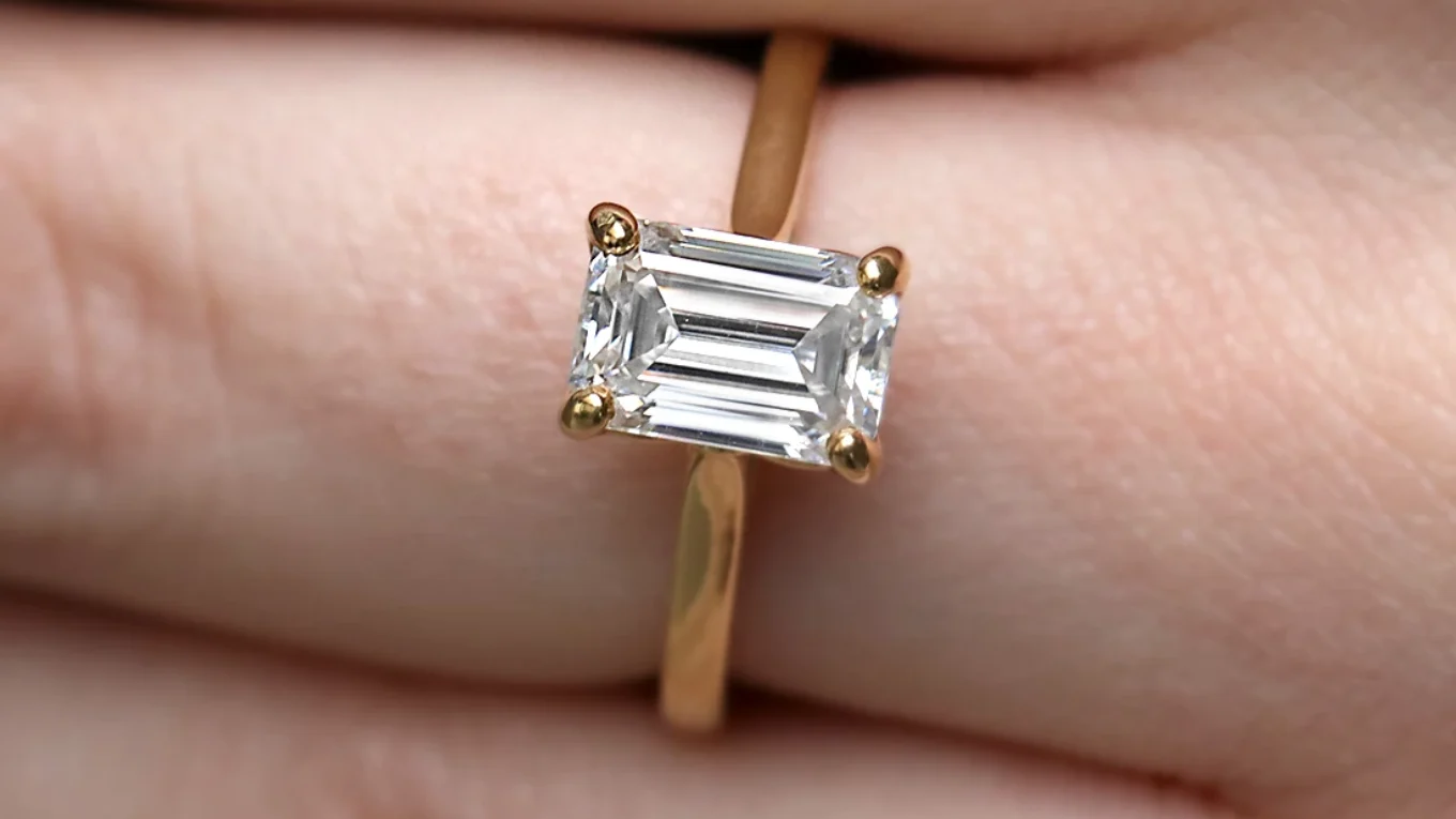 This elegant engagement ring showcases a striking 1.70ct emerald cut diamond, admired for its hall-of-mirrors effect and clean geometry. The emerald cut’s long step facets create dramatic flashes of light, emphasising clarity and symmetry while offering a sophisticated alternative to brilliant cuts.