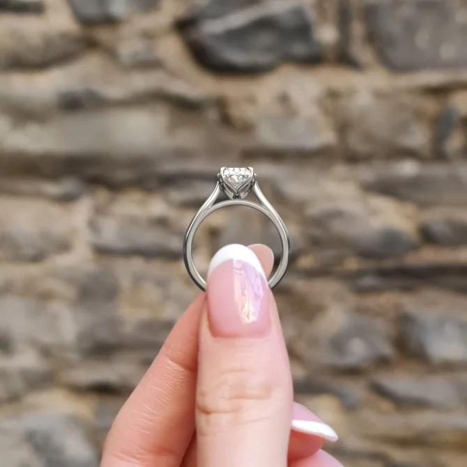 Designed for daily wear, this solitaire is wedding-ring friendly, ensuring a seamless pairing with a wedding band. Handcrafted in-house in Ireland, it is available in a choice of precious metals and with either natural or lab-grown diamonds.