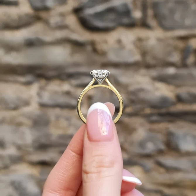 With its clean lines and minimalist design, this solitaire allows the diamond to take centre stage, embodying both sophistication and enduring style. Handcrafted in-house in Ireland, the ring can be customised with a choice of precious metals and either natural or lab-grown diamonds.