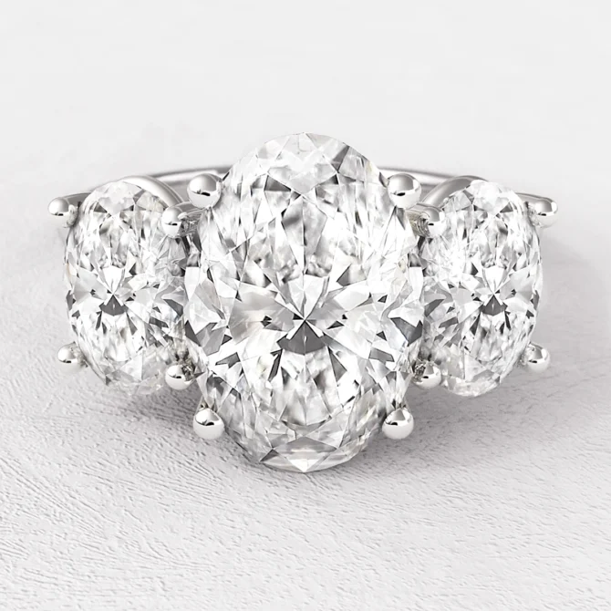 - Trio of oval diamonds for flowing brilliance and symmetry