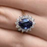 3.60ct Oval Cut Lab Grown Sapphire & Diamond Ring CR1048. A remarkable halo ring set with a 2.80ct lab grown blue sapphire.