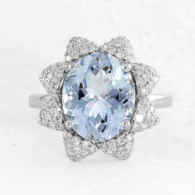 4.38ct Floral Oval Aquamarine Diamond Halo Ring GR062
