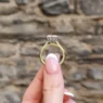The open structure of the tulip design allows maximum light to pass through the diamond, amplifying its brilliance, fire, and scintillation. Flowing from the elevated setting, the polished 18ct yellow gold band maintains a refined silhouette, designed with a wedding-ring friendly profile to sit flush alongside a wedding band.