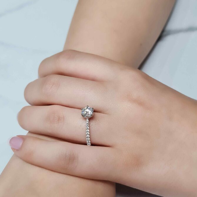 - 0.80ct round brilliant cut center diamond for timeless sparkle and classic charm