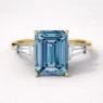 A 2.50ct emerald cut blue diamond is complemented by tapered baguette side stones in this sleek three stone design. Crafted in 18ct white gold with a 4-claw setting, it delivers refined elegance with modern precision.