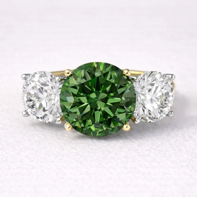 3.60ct Round Trilogy Green Diamond Engagement Ring TR1087- Green
