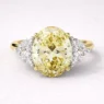 - 1.50ct oval centre yellow diamond, featuring 0.25ct half-moon side stones