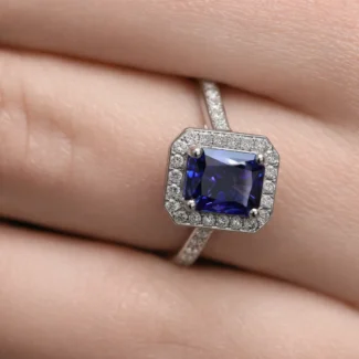 Halo gemstone rings are a popular alternative to the classic diamond option. The most popular option being a sapphire but other options include a ruby, emerald, morganite, aquamarine to name a small few.