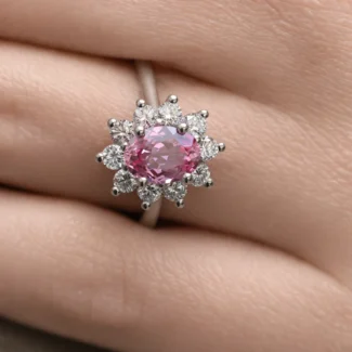 2.90ct Lab Grown Pink Sapphire Halo Ring CR5743