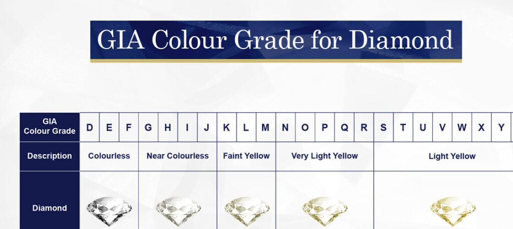 The Gemological Institute of America (GIA) grades diamond colour on a scale from D (colourless) to Z (noticeable yellow/brown tint).