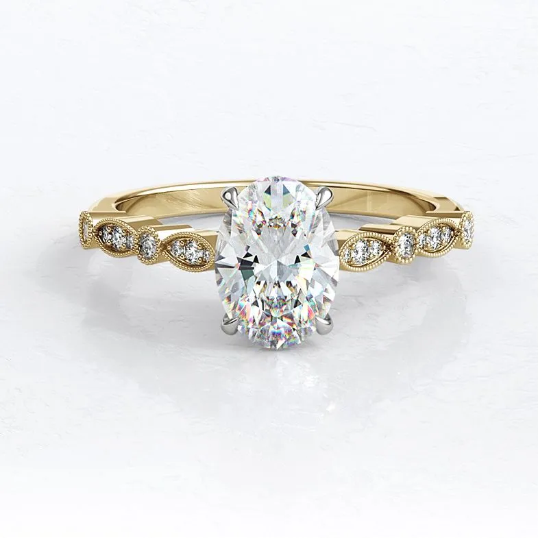 Stick with simpler detailing while keeping vintage motifs like milgrain or side stones