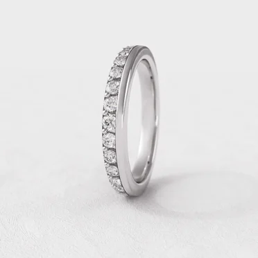 Ladies wedding band set with round brilliant cut diamonds in a scallop or claw setting. Hand made in our Dublin workshop in Ireland, this ring is available in all 18k precious gold, platinum and 14k golds.